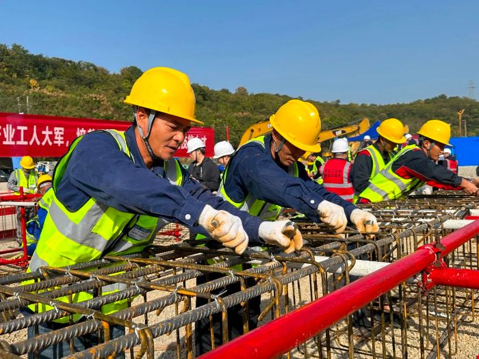 ▲钢筋绑扎比赛现场 摄影:黄欣