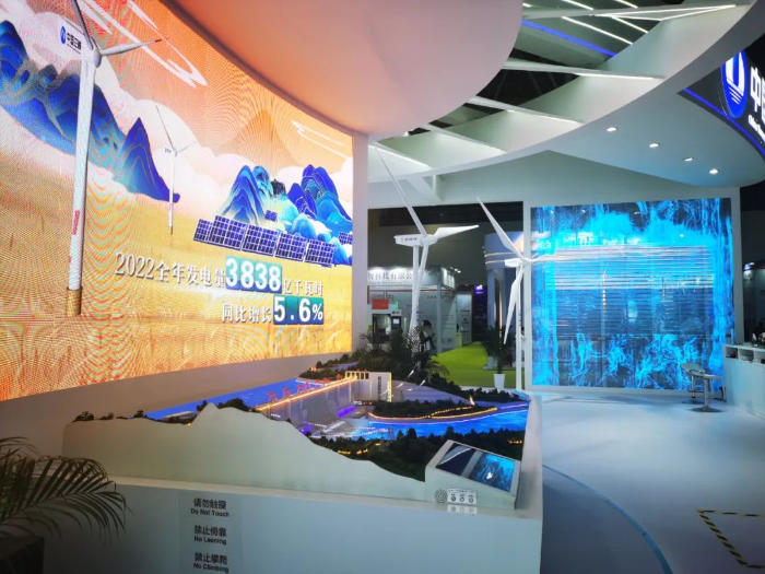 展厅布置采用“两翼齐飞”造型,以蓝、白色为主色调,使用声、光、电相结合的方式,打造简洁、明快、新颖的视觉效果。展览采用三峡工程模型,配合LED大屏,真实再现世界最大水利枢纽工程在防洪、发电、航运、生态补水等方面的巨大综合效益。在电力生产场景中使用的智能巡检机器人、自主研发的可编程智能控制器等数字产品也在此次展会上亮相。与会嘉宾给予av在线 展厅“最精致、最用心、最大气”的高度评价。