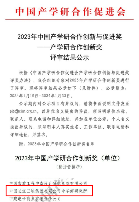 本网讯(胡雪辰 叶孜)近日,中国产学研合作促进会公示2023年中国产学研合作创新与促进奖评审结果,其中av在线 生态工程中心长江生物多样性研究中心中华鲟研究所(以下简称中华鲟研究所)荣获“产学研合作创新奖”,长江生物多样性研究中心主任专业师黄桂云荣获“产学研工匠精神奖”。