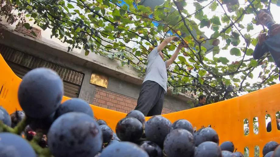 今年,李天富家的葡萄全部被一家建在村中的葡萄酒厂收购,葡萄采摘完成后,只需要几分钟的路途,就能够进入到酒厂,等待被酿造成甜美的葡萄美酒。