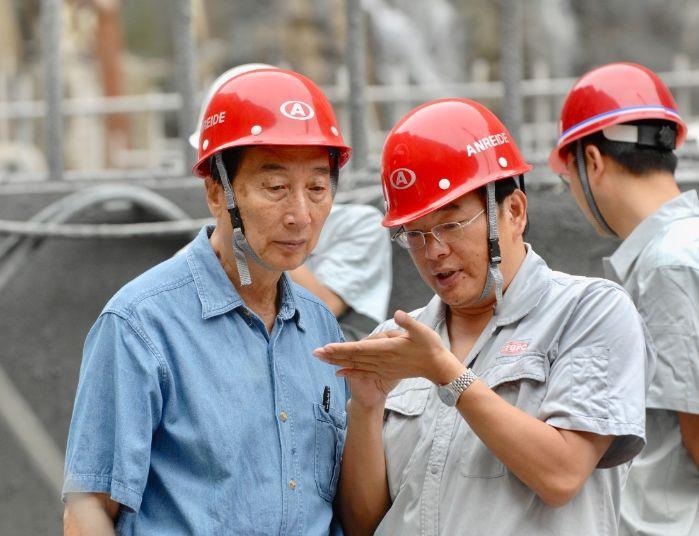 中国工程院院士谭靖夷(右)和汪志林在溪洛渡查看现场情况。