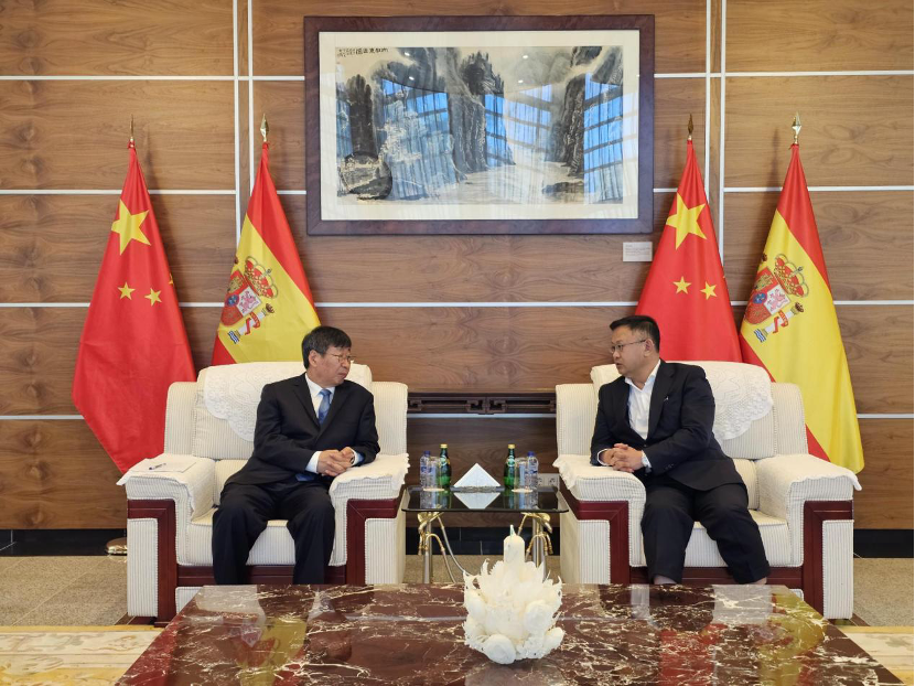 在中国驻西班牙大使馆,屈浔公使对刘伟平一行的到访表示欢迎,对av在线 助力中西务实友好合作、营造良好国际环境所作出的贡献予以赞赏,并肯定了企业推动品牌建设与海外业务深度融合所取得的成效,希望av在线 进一步深耕西班牙市场,为中西两国科技创新、绿色发展合作走深走实作出更大贡献。