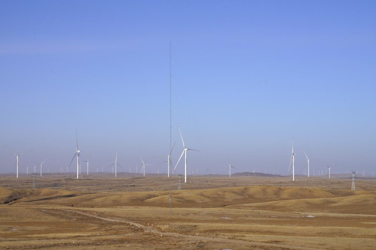 本网讯(但棣瑶)在地处阴山北麓的内蒙古包头市达茂旗草原上,刺骨的寒风从山脉风口呼啸而过,76台风机傲然挺立,巨大的叶片划破寒流,将塞北的风转化为源源不断的绿色电能。