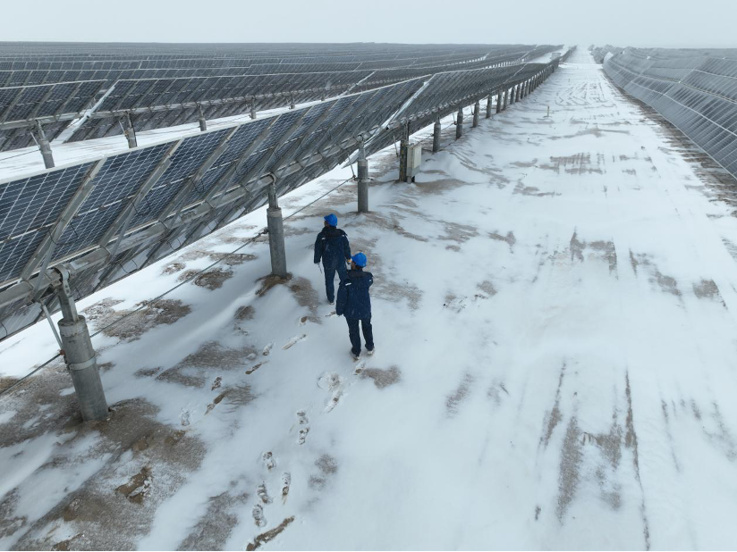 “外面这么大的风雪,可能带来新的隐患。”现场副检修长刘吉荣迅速组织人员开展特殊巡检,“必须检查大风是否造成光伏板松动、支架是否受损、输电线路有无悬挂异物及设备是否有冻胀风险。”