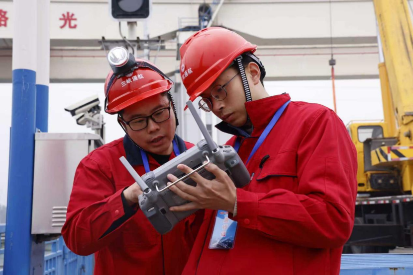 ▲ 现场工作人员正在通过无人机检查船闸附属设施 摄影:佘晓锦