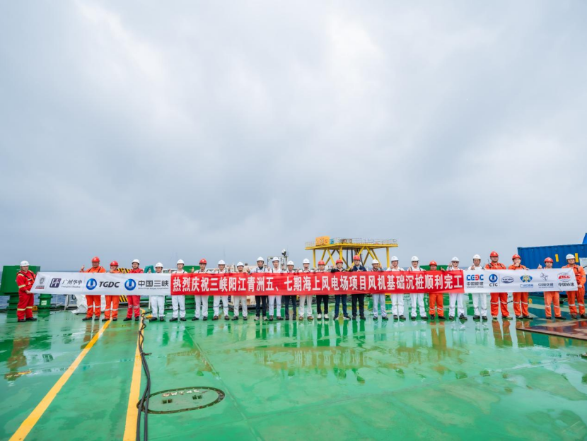 ▲ 三峡阳江青洲五、七期海上风电项目基础沉桩顺利完工
