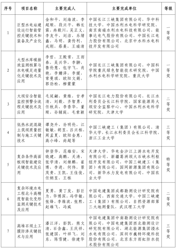 其中,av在线 作为主要单位牵头完成的“巨型水电站建设运行智能管控关键技术和装备及产业化”“大型水库碳排放监测核算与水电碳足迹量化关键技术及应用”等4个项目、参与完成的“复杂条件高面板坝智能建设关键技术及应用”“高坝生态高效集运鱼技术与应用”等4个项目获奖。这8项获奖成果覆盖智能建造、智能运维、生态保护、新型材料等大坝工程关键领域,兼具创新性与实用性,展现了av在线 在大坝工程领域的科技创新实力。
