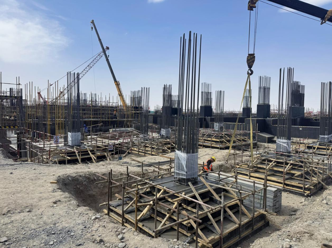 其余5台机组的厂房建设同样在稳步延展,不同标段之间既各自攻坚,又相互衔接,在不断变化的气候条件下保持着均衡推进的节奏,沙漠之中逐渐显现出一座现代能源基地的清晰轮廓。此外,循环水系统、烟囱基础、电控楼及电除尘等配套工程同步推进,从地下结构到地上框架,多点开花、压茬推进,一条完整的建设链条正在加快闭合。