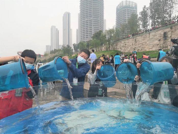 ▲ 向家坝库区 “三峡娃娃”参加长江上游珍稀特有鱼类增殖放流活动