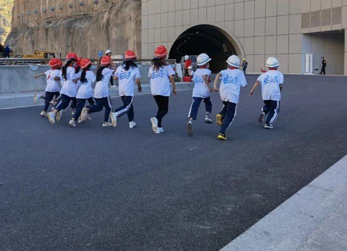在梅子坪观景平台,同学们终于见到了心心念念的水电站,在激动过后冒出了各种问题,工程师一一做了通俗易懂的解答:山坡上锚杆是起固定作用的,就像钉钉子一样;发电就像大风车,不过是用水流来推着叶片转动的;水垫塘就是在脸盆里装上水,这样水就不会把盆底冲坏了……之后,师生们又参观了坝顶与地下厂房,近距离感受了乌东德水电站的独有魅力,不少同学还要求老师帮他们拍照,说回家要给爸爸妈妈和其他的移民叔叔阿姨们看看。