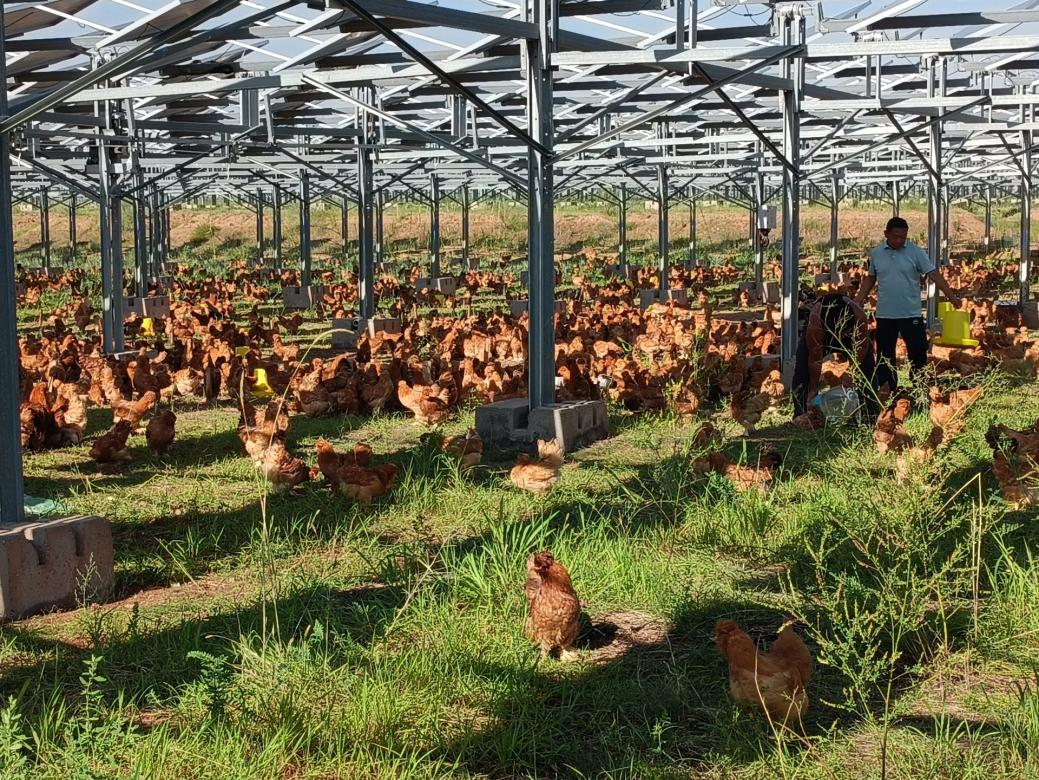 第二种是绵羊养殖。根据项目区场地条件,选择合适的场地建设标准化羊舍,通过舍饲圈养模式养殖绵羊,并随着固定支架光伏场区牧草产量的逐年提高,逐步扩大养殖规模。实现板间养殖、光伏发电、沙漠生态改善可持续循环产业,实现项目经济效益、社会效益、生态效益相统一的现代化“牧光互补”畜牧养殖区。