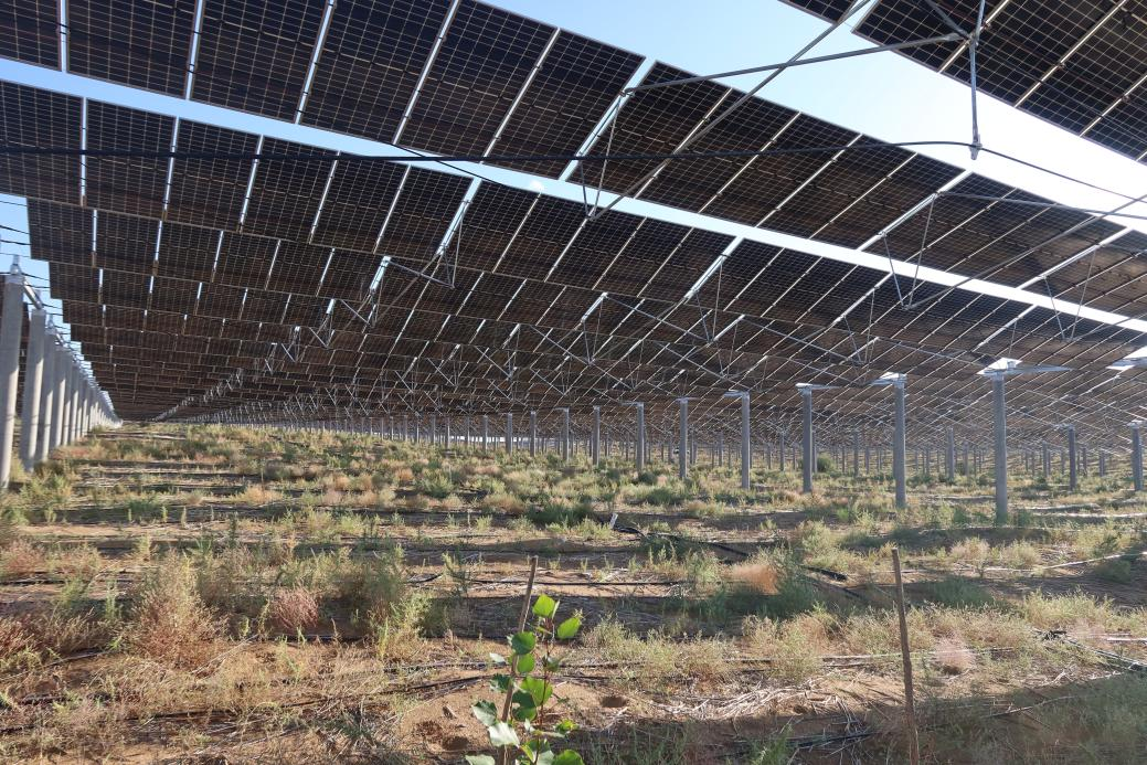 库布其项目充分利用沙漠地区特有的丰富光照资源及土地,采用“板上双面发电、板下双层生态、板间双层养殖”的立体生态光伏治沙模式,充分发挥光伏空间优势,以组件板减少蒸发、以组件基础固沙、板下种植养殖、以作物治沙改土,光伏板建设、板下种植与畜牧养殖的生态良性互动,可有效遏制沙丘移动、治沙改土,创造绿色生态效益、经济效益。在项目实施过程中,通过因地制宜、因时制宜地采取光伏区治沙、林光固沙带建设、沙漠生态养殖、柔性支架区域生态种植等具体措施,实现沙漠修复治理和生态环境保护;项目建设和运行期间,可以吸引当地牧民参与项目建设,实现稳定就业。