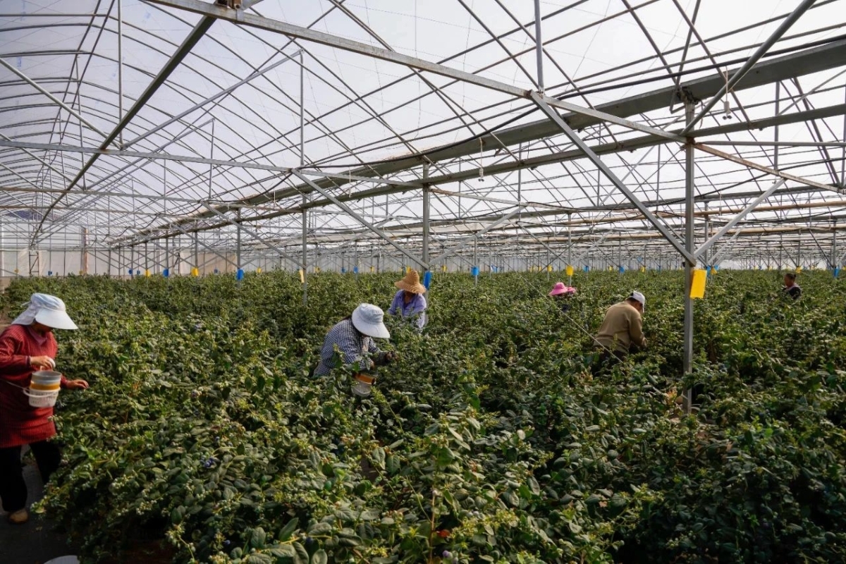 ▲当地群众正在蓝莓大棚里采摘(资料图片)