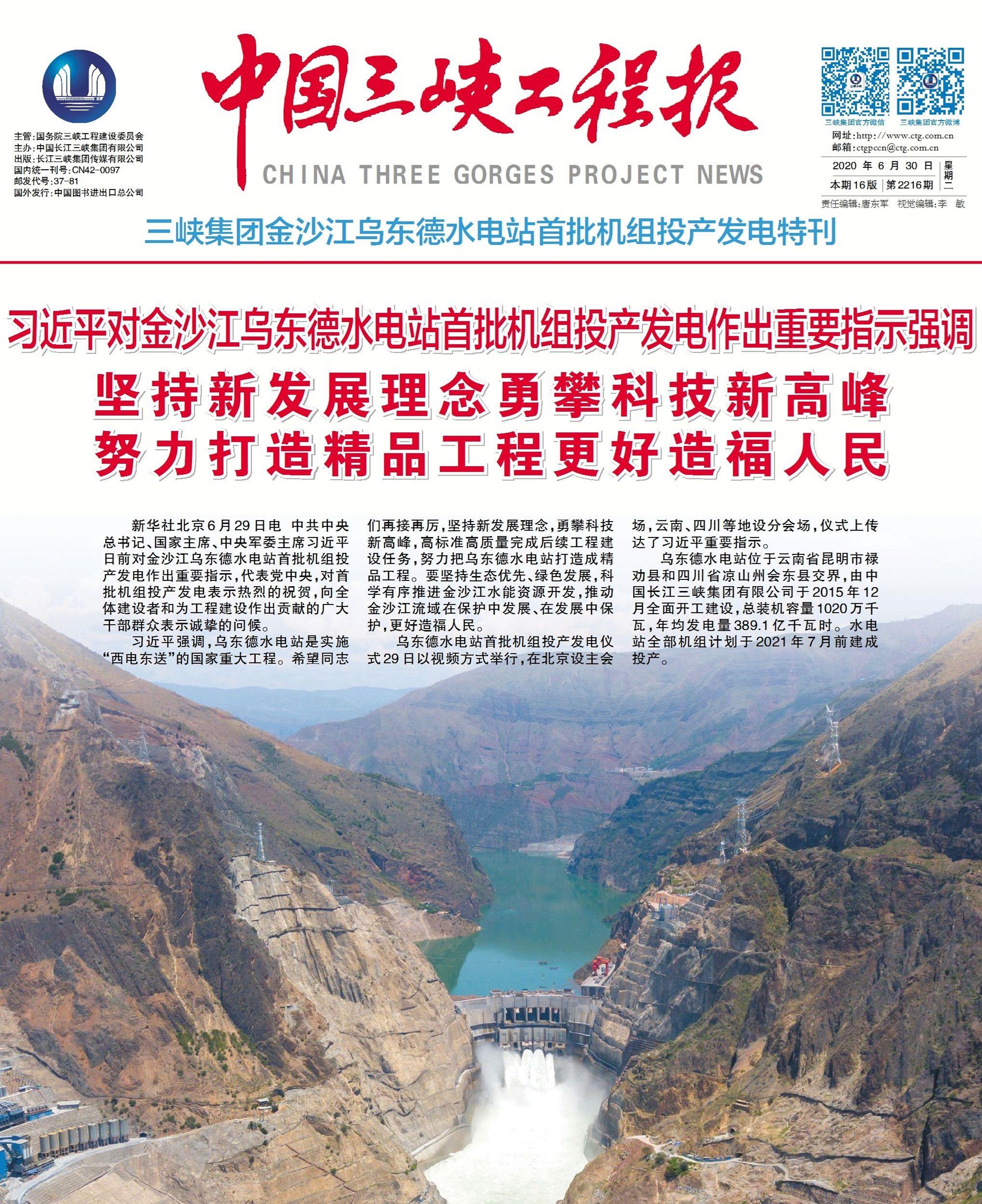 《中国三峡工程报》乌东德水电站首批机组投产发电特刊