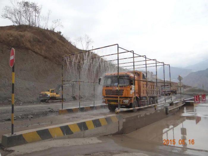 对翻渣区进行洒水,渣场进口设置有渣车喷淋冲洗装置。