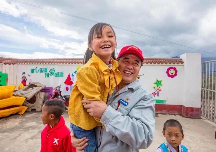 ▲ 白鹤滩工程建设者与八岩村小学学生
