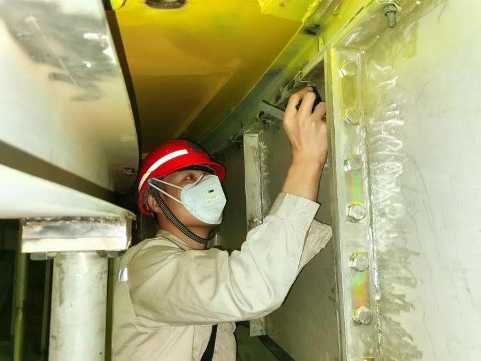 ▲白鹤滩建设者在检查转子紧固件。摄影:韩普昌