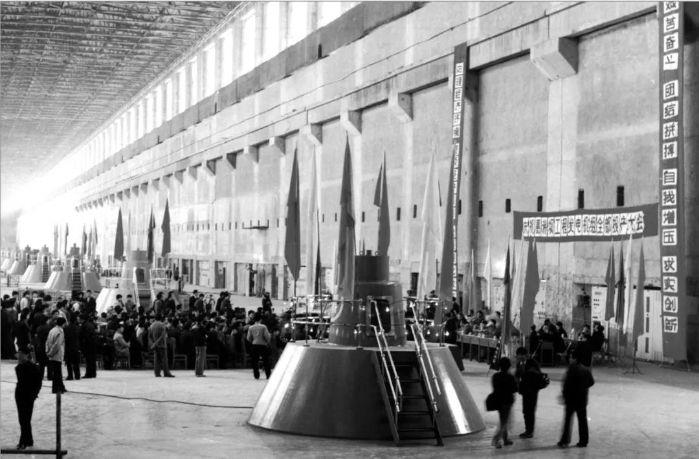 ▲1988年12月10日,21台机组全部投产发电,图为庆祝大会会场。