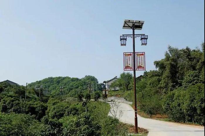 在紫阳村主干道上,一根根白色太阳能路灯整齐排列在道路两旁。2017年和2019年,长江电力分两批捐赠安装了88盏和140盏路灯,亮化道路7.8公里,为1000余户3000余人安全出行提供了便利。