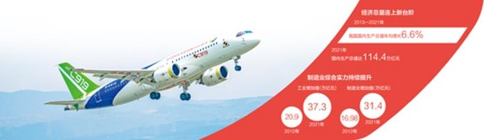 非凡十年,在以习近平同志为核心的党中央坚强领导下,我国经济实力实现历史性跃升。从2012年到2021年,我国国内生产总值从53.9万亿元增长到114.4万亿元,我国经济占世界经济的比重从11.3%增长到18.5%,提高了7.2个百分点,我国人均国内生产总值从39800元增长到81000元。