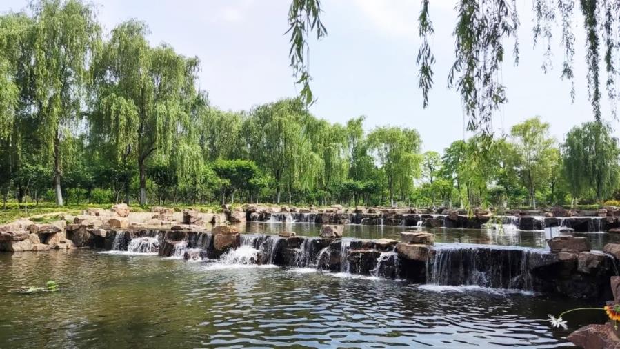 安徽省六安市凤凰河湿地公园中的网红“瀑布”,水流为凤凰桥污水处理厂的尾水。摄影:谢泽