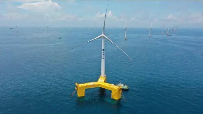 ▲我国首个漂浮式海上风电平台,搭载全球首台抗台风型漂浮式海上风电机组,组成“三峡引领号”。