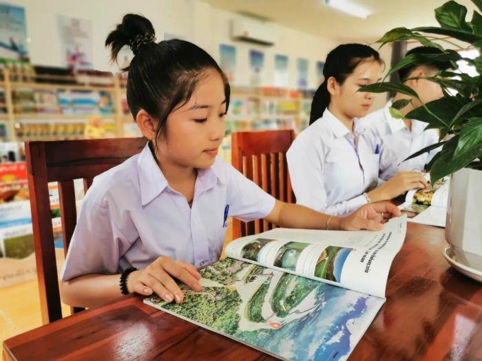 ▲ 帕贡学校学生在新建的“澜湄书屋”图书室看书 三峡中水电供图