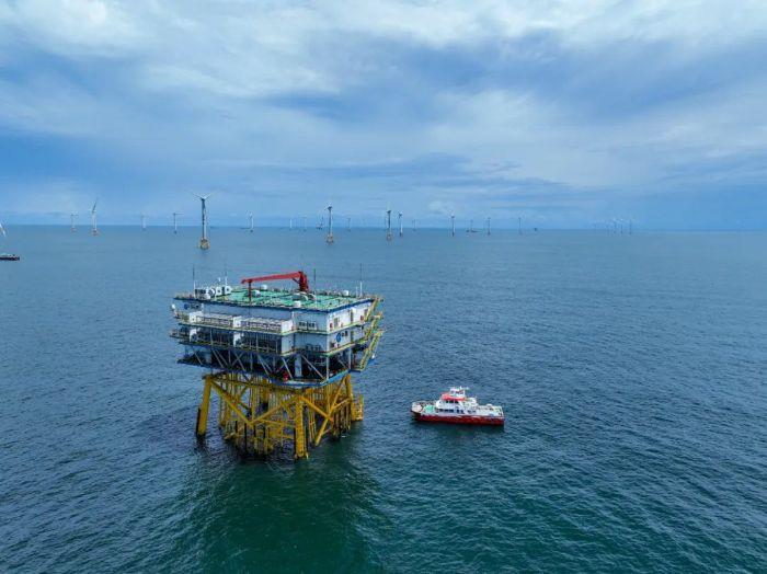 那里不仅仅是工作人员夜里的避风港湾,还是海上风电场的“心脏”,风机产生的电能需通过海上升压站,才能由高压海底电缆输送至陆上,但吊装这个“庞然大物”,却极为不易。