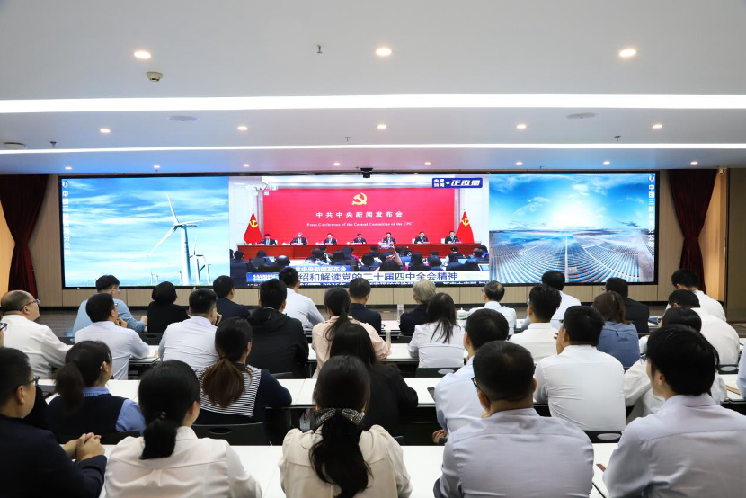 10月24日上午,三峡投资公司党委组织集中收看中共中央新闻发布会,学习党的二十届四中全会精神。