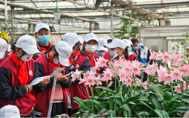 “三峡娃娃行”活动走进三峡工程。图为学生们在长江三峡珍稀植物研究所里观察记录珍稀植物信息(摄影:张祖新)