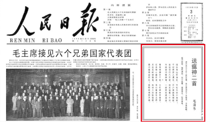 1958年6月30日,《人民日报》报道了江西余江消灭血吸虫病的消息。毛泽东主席得知后,欣然命笔,写成了不朽的诗篇《送瘟神二首》——