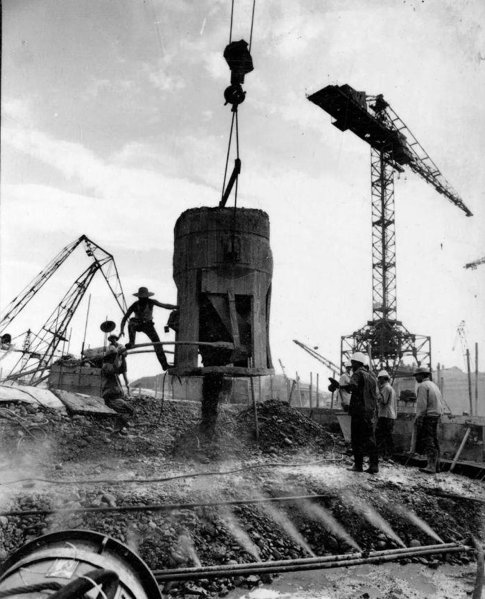 ▲1981年大江船闸闸首第一方混凝土浇筑。摄影:李佐高