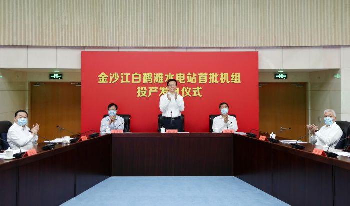 中共中央政治局常委、国务院副总理韩正在北京主会场出席仪式,并宣布白鹤滩水电站首批机组正式投产发电。全国政协副主席、国家发展改革委主任何立峰宣读了习近平的贺信和李克强的批示。