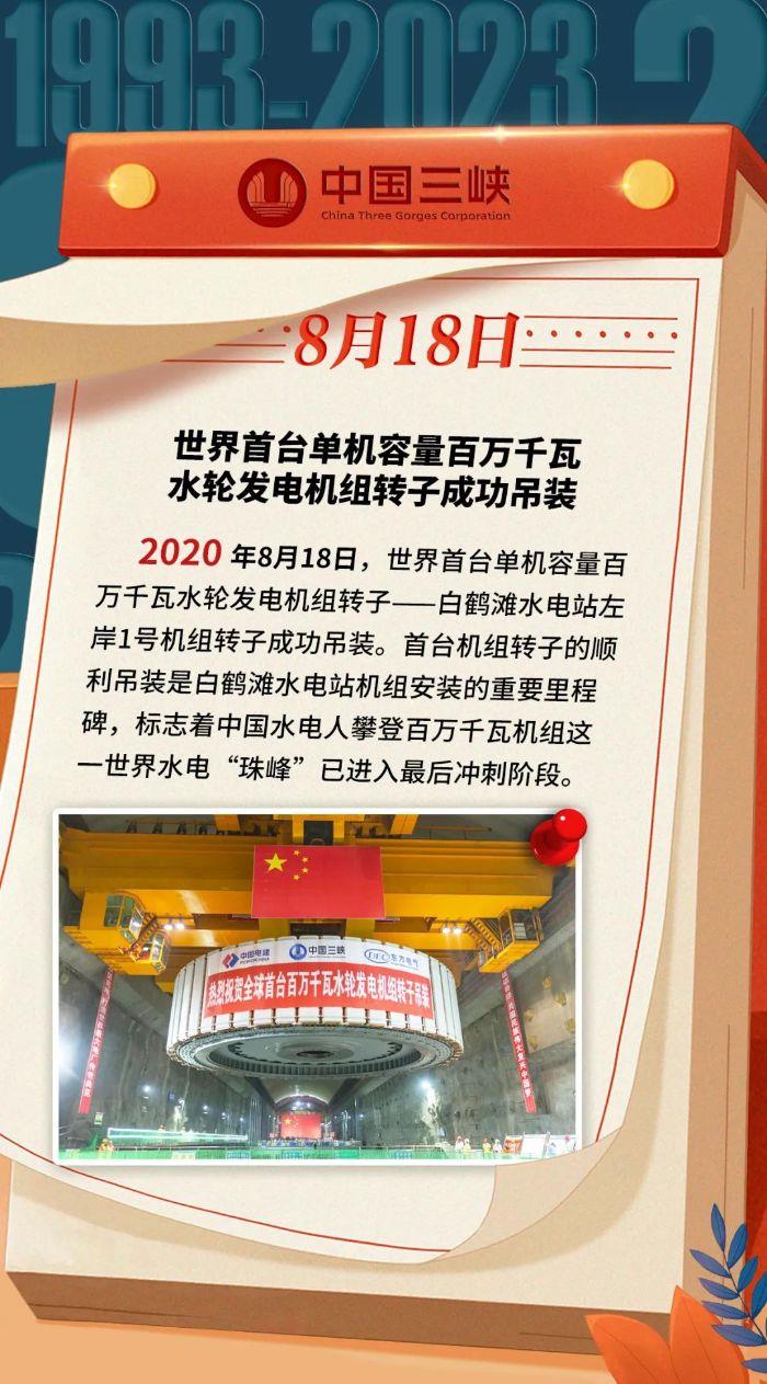 三峡 · 历史上的今天丨世界首台单机容量百万千瓦水轮发电机组转子成功吊装(8月14日-8月20日)