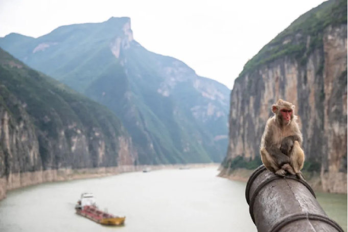 ▲ 在重庆市奉节县瞿塘峡拍摄的猴子。摄影:新华社记者 储加音