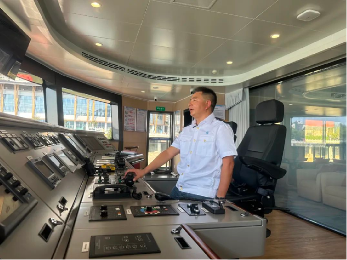 ▲ 曾担任过总船长的湖北三峡旅游集团叶勇在船舶驾驶室。摄影:黄欣