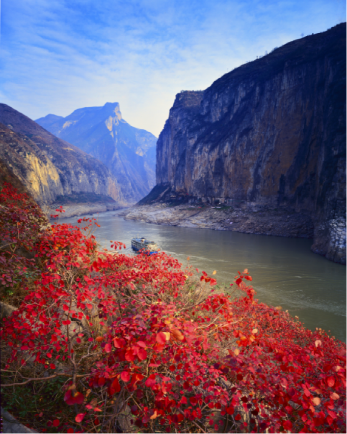沟通巴蜀与中东部的长江上游段,俗称川江,或称蜀江,一般指四川宜宾至湖北宜昌之间的河段,全长约1030公里。重庆以上的370公里为上川江,重庆以下的660公里称为下川江,下川江流经丘陵和高山峡谷地区落差120米的三峡地区,因两岸山峦夹峙,水流急湍,所以又有“峡江”之称。诗圣杜甫诗云——“高江急峡雷霆斗,古木苍藤日月昏”,描绘的就是三峡的险峻。