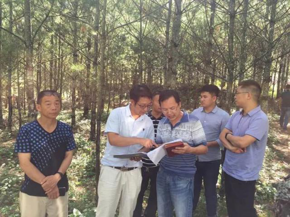 刘松(左二)下乡检查工作。