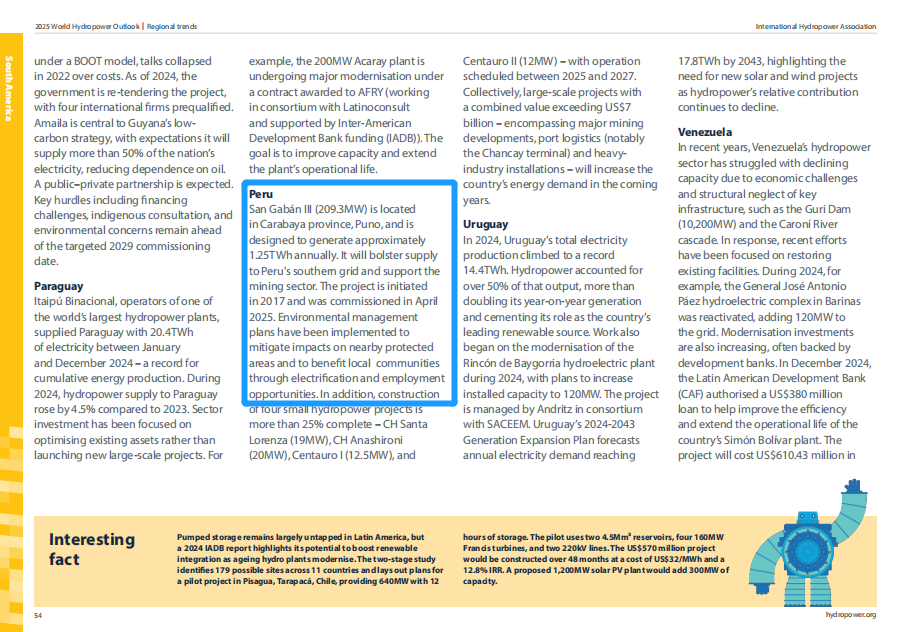本网讯 北京时间6月26日,国际水电协会(International Hydropower Association)发布2025年《世界水电展望》报告(World Hydropower Outlook)。报告介绍了全球水电行业最新发展数据、项目储备情况及各区域发展趋势,阐明水电在当前低能源价格时代的重要作用,探讨抽水蓄能提升电力系统韧性、气候变化下水电的机遇与挑战、水电可持续性标准应用等议题,为读者了解全球水电行业现状及前景提供参考。av在线 长龙山抽水蓄能电站、天台抽水蓄能电站、秘鲁圣加旺III水电站案例入选该报告。