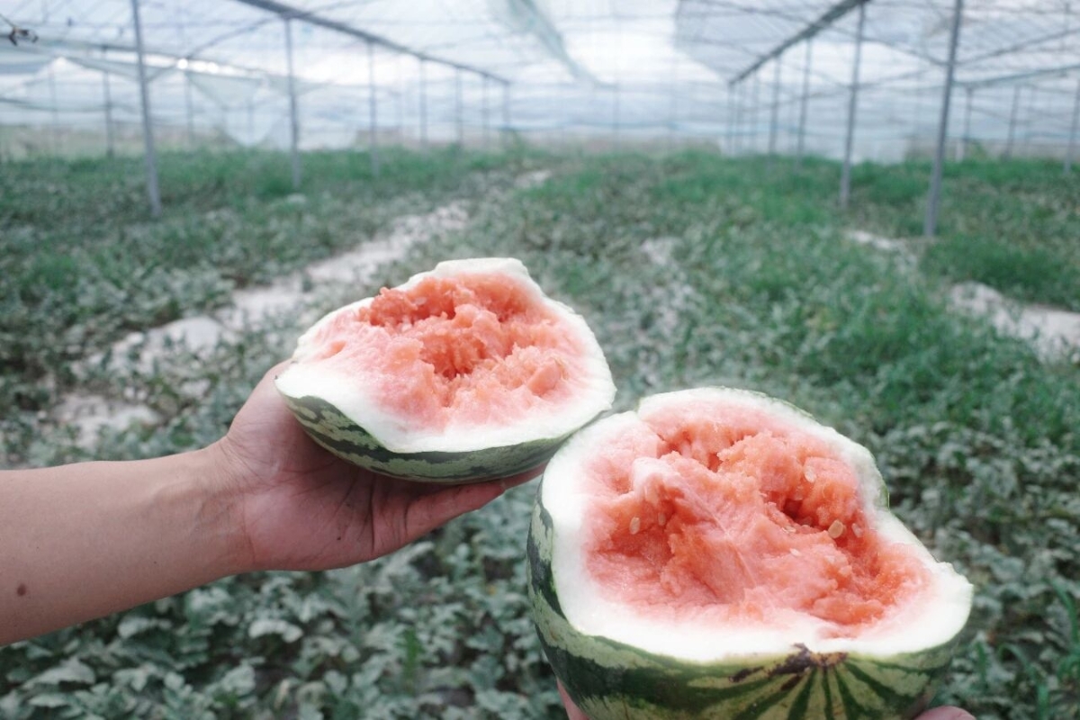 “这片地土壤是沙质、富硒的,特别利于西瓜生长。”倪阳峰说。