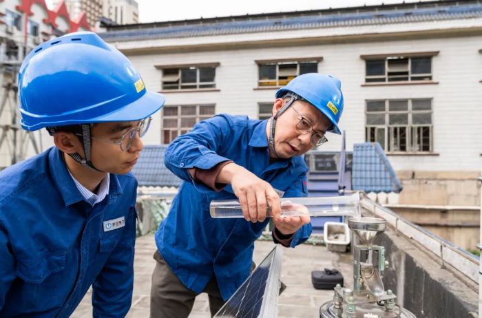 ▲ 三峡梯调水情遥测巡检组正在校验雨量计 摄影:陈磊