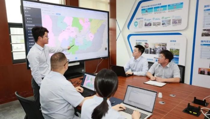 ▲ 三峡梯调水资源高效利用研究所正在进行会商讨论 长江电力供图