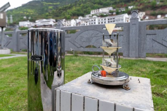 “至于降雨量的监测,我们采用的是翻斗式雨量计。”张玉松领着记者登上站房屋顶,打开柱状集雨桶,出现一个微型“阁楼”模样的两层装置。