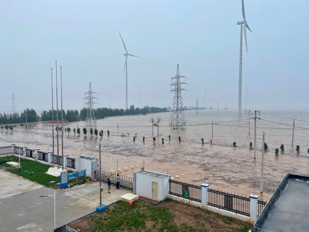 ▲ 2021年7月22日,鹏越风电场升压站被洪水围困