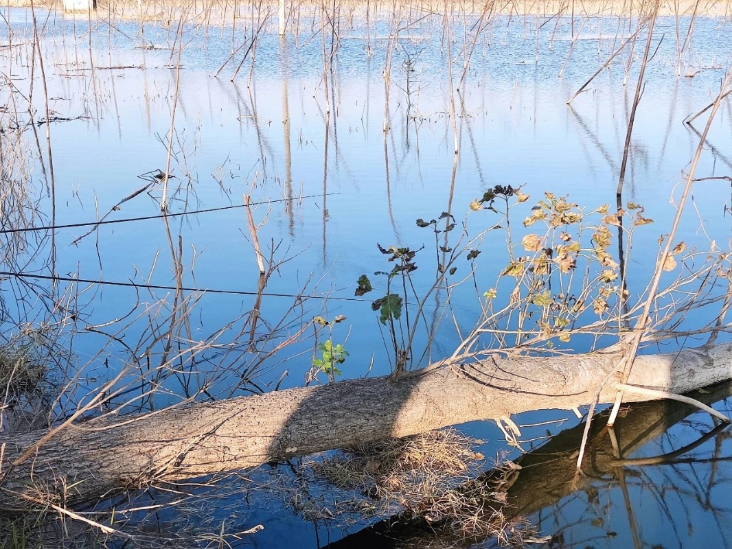 此时,水位虽降,但大部分风机基础仍浸泡在浑浊的洪水中,这让宋雨生心急如焚。“要想恢复发电,让风机早一天转起来,就得赶紧进风机塔筒内检查设备!”但如何进入塔筒,宋雨生却犯了难:水面上,树木的枝杈密密匝匝地伸出水面,断木枯枝和垃圾堆成一座座“浮岛”;水下,河道、水井与灌溉沟渠纵横交错,共同在风机周边织就了一道危险的“封锁线”。